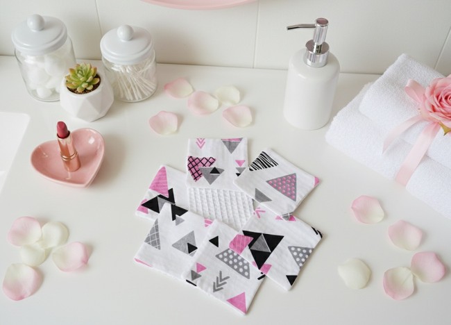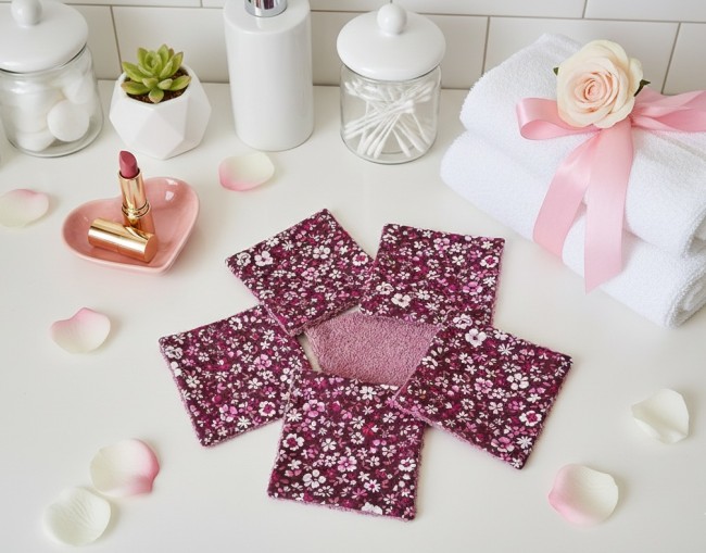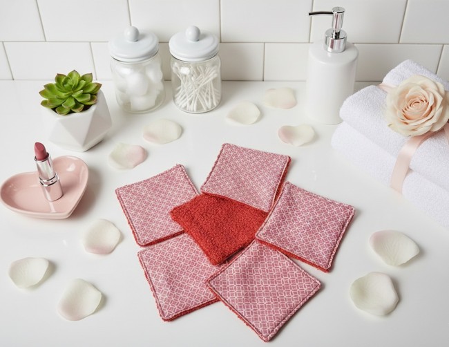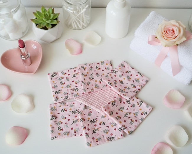 Boite de 6 lingettes démaquillantes coton imprimé et nid d'abeilles rose