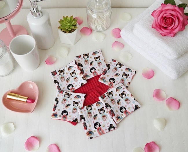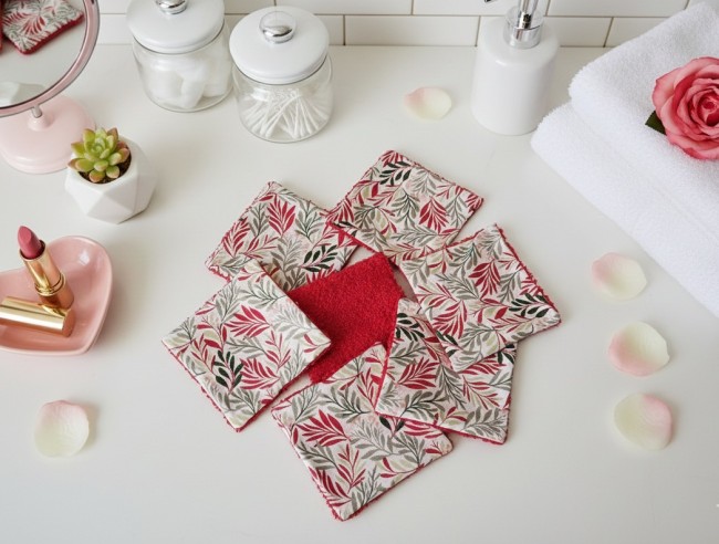 Lot 8 lingettes démaquillantes coton imprimé et nid d'abeilles rouge