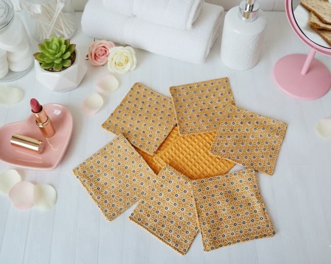 Lot de 8 lingettes démaquillantes coton imprimé et éponge moutarde