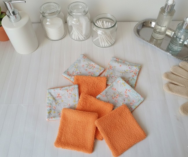 Lot de 8 lingettes démaquillantes coton imprimé fleurs et éponge orange