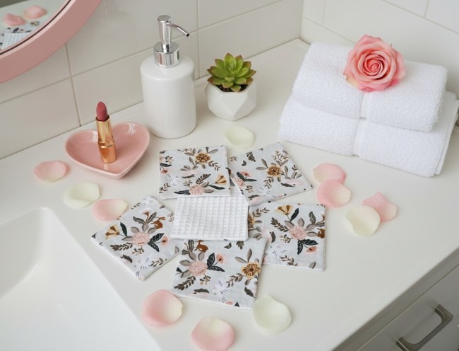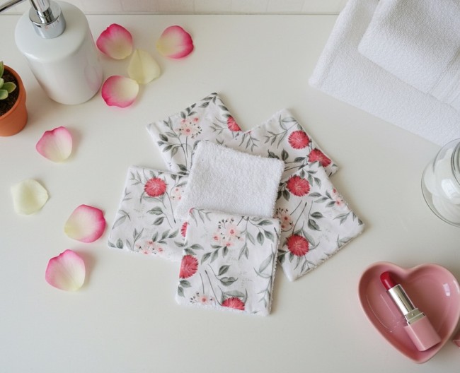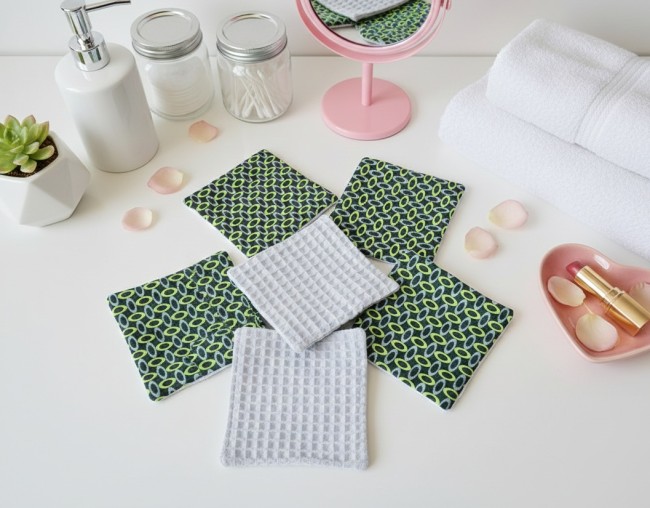 Lot de 12 lingettes démaquillantes coton imprimé et nid d'abeilles