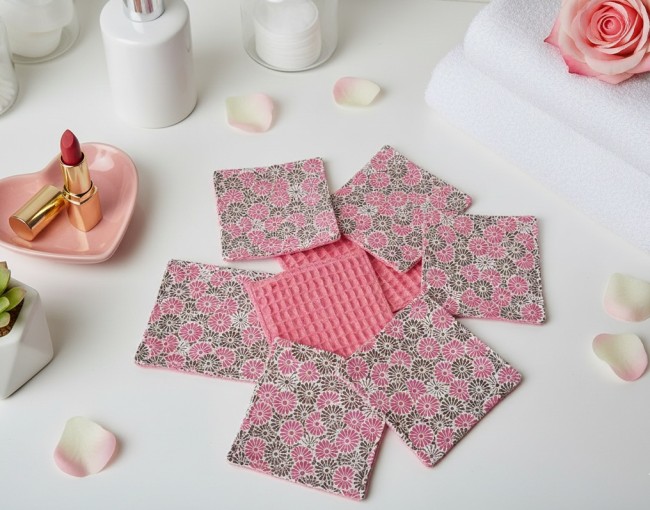 Boite de 8 lingettes démaquillantes coton imprimé et nid d'abeilles rose