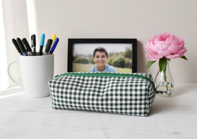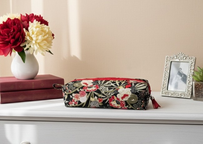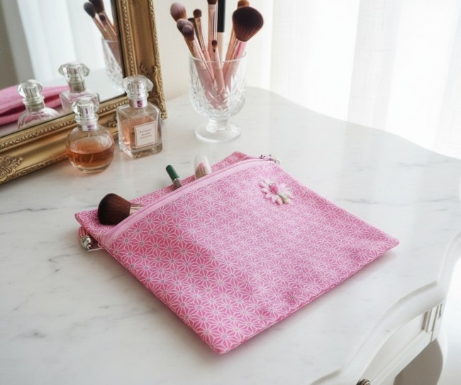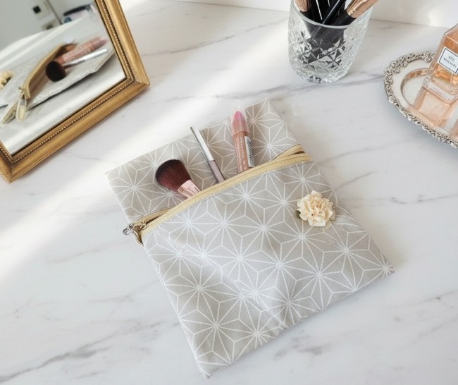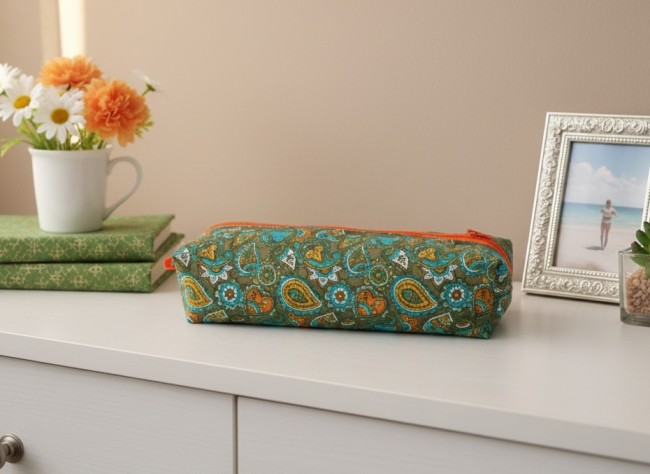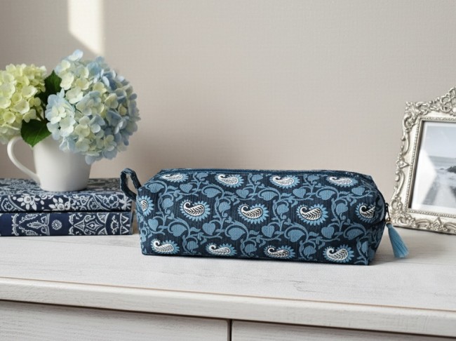 Trousse fourre tout double entoilage bleu motifs cachemire