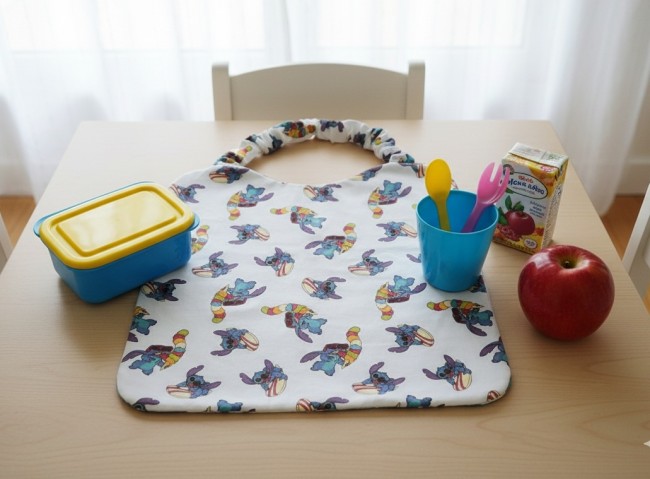 Serviette de cantine motifs Stitch surf et éponge blanche