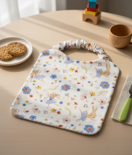 Serviette de cantine motifs lapins danseuse et éponge blanche