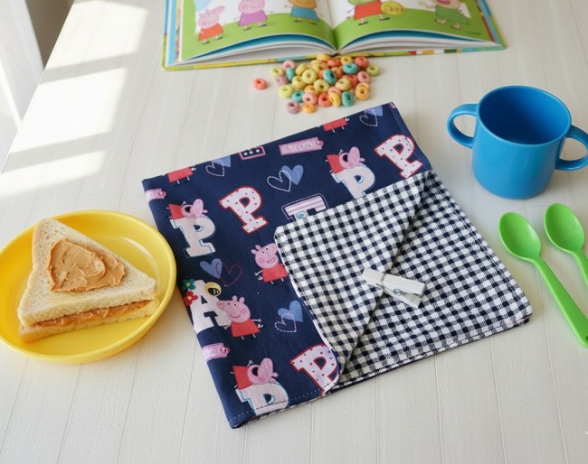 Serviette de table doublée pour enfant bleu/Peppa Pig