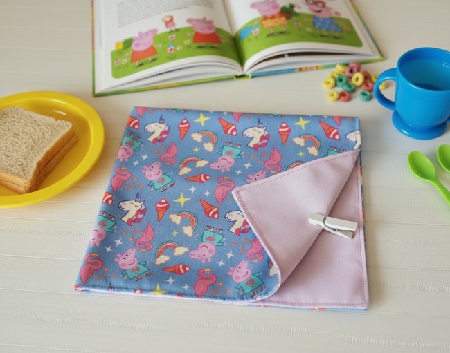 Serviette de table doublée pour enfant mauve/Peppa Pig