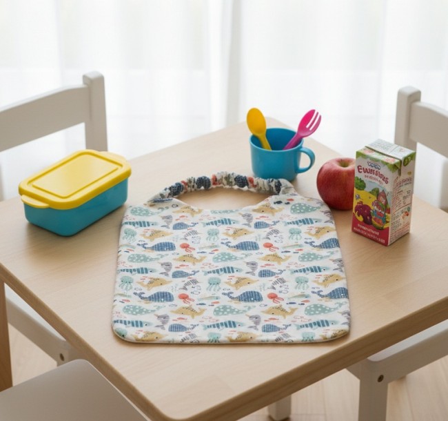 Serviette de cantine motifs poissons et éponge blanche