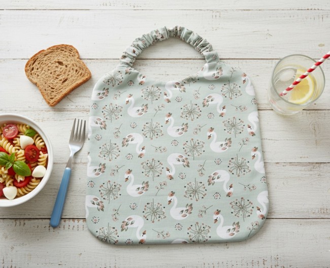 Serviette de cantine motifs cygnes et éponge blanche