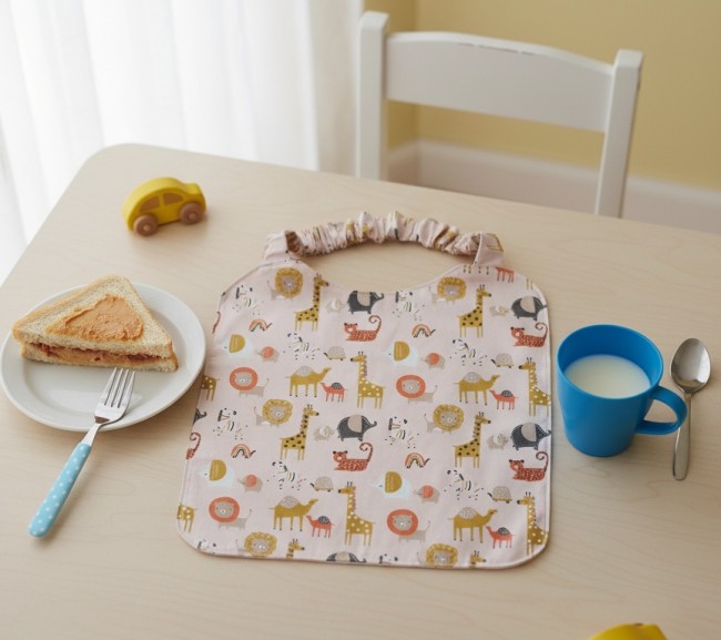 Serviette de cantine rose saumon motifs animaux