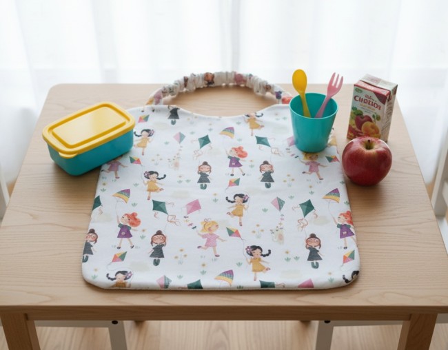 Serviette de cantine motifs jeunes filles/cerf volant et éponge blanche