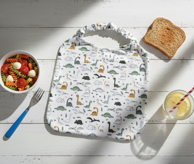 Serviette de cantine motifs dinosaures et éponge blanche