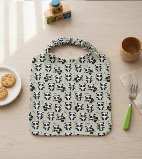 Serviette de cantine motifs panda et éponge blanche