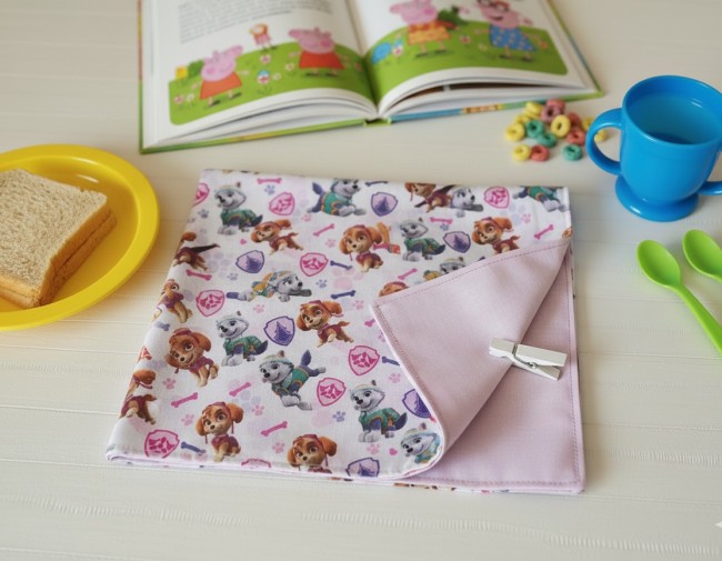 Serviette de table doublée pour enfant mauve/Pat Patrouille