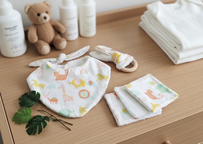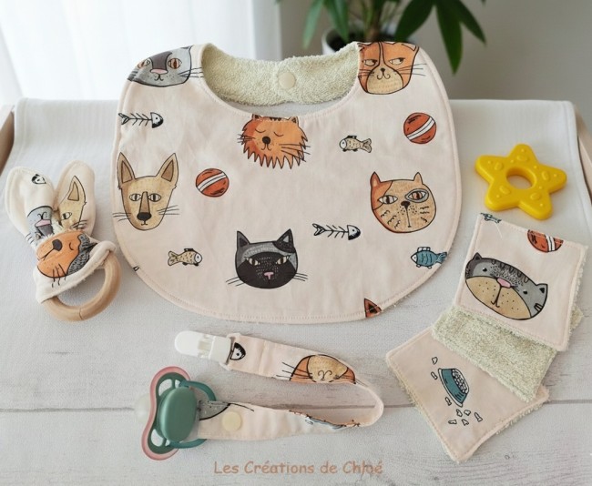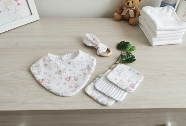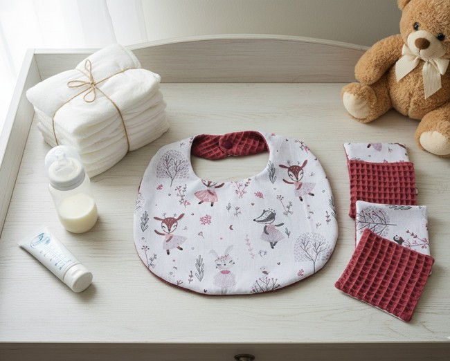 Ensemble naissance bavoir et 10 lingettes motif animaux