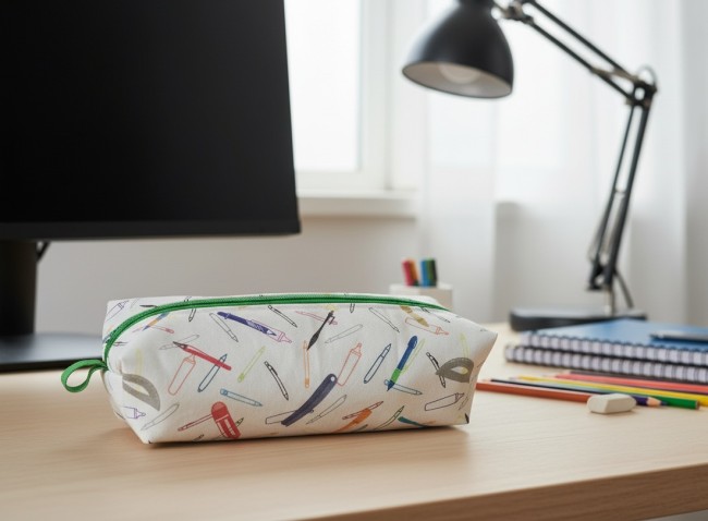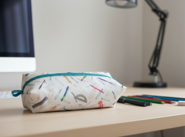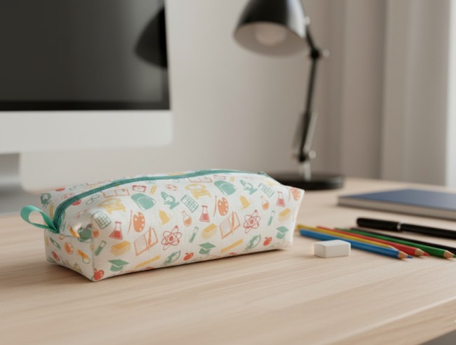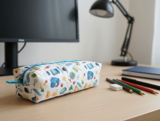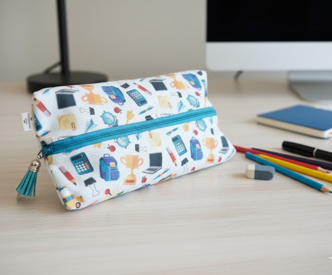 Trousse d'école enfant double entoilage motifs fournitures scolaires