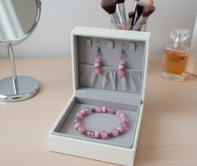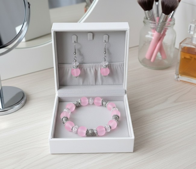 Kit parure bracelet et boucles d'oreilles rose