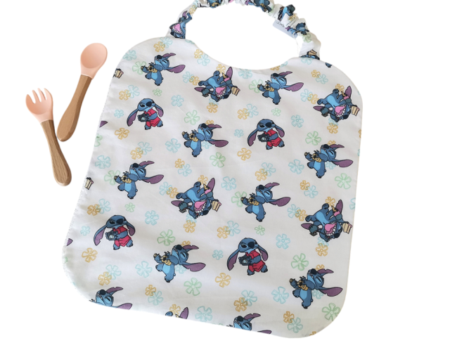 Serviette de cantine coton blanc motifs Stitch photo et éponge blanche