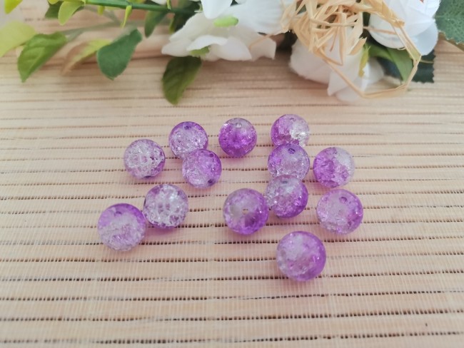 50 Perles en verre 8 mm lilas tréfilé blanc