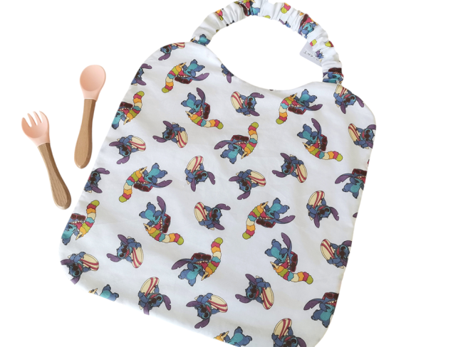 Serviette de cantine coton blanc motifs Stitch surf et éponge blanche