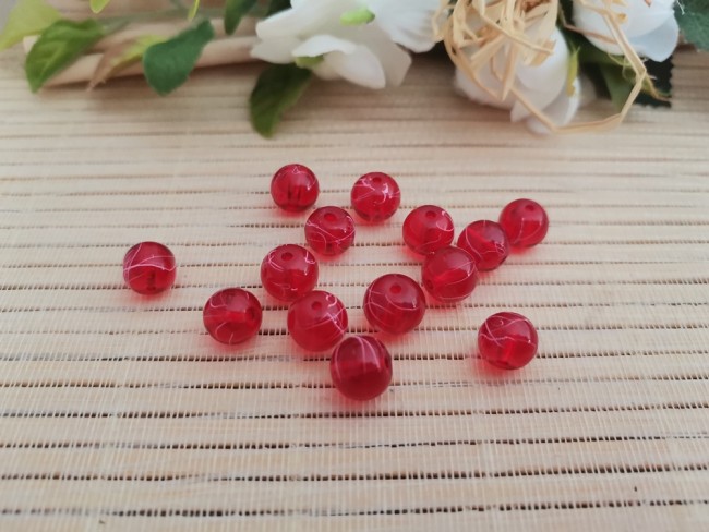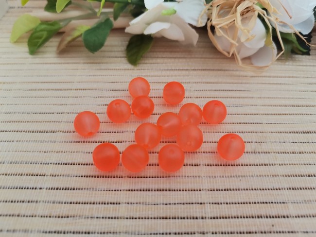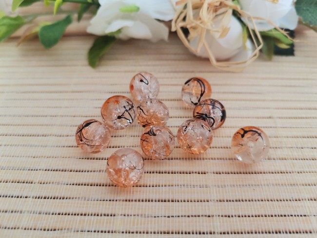 Perles en verre ronde 8 mm orange motif fissuré x 20