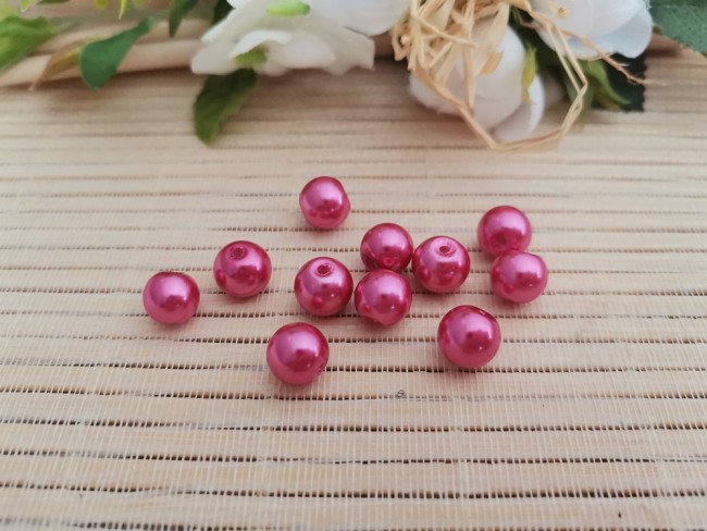 50 Perles en verre 8 mm fuchsia tréfilé rose