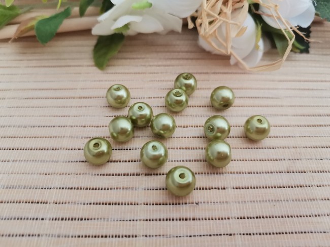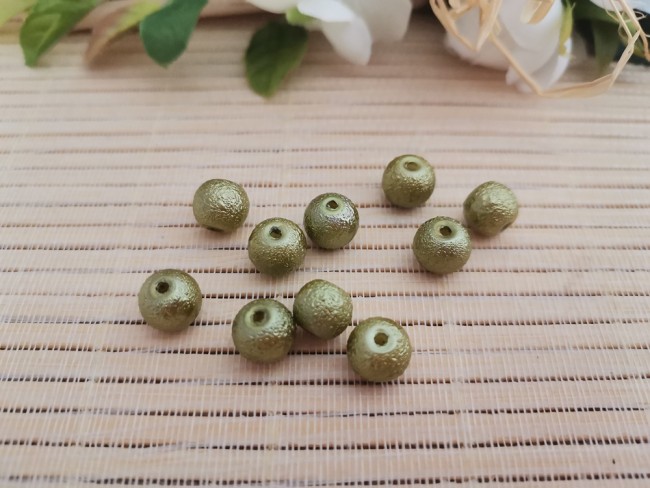 10 Perles en verre 8 mm granuleuse vert kaki clair