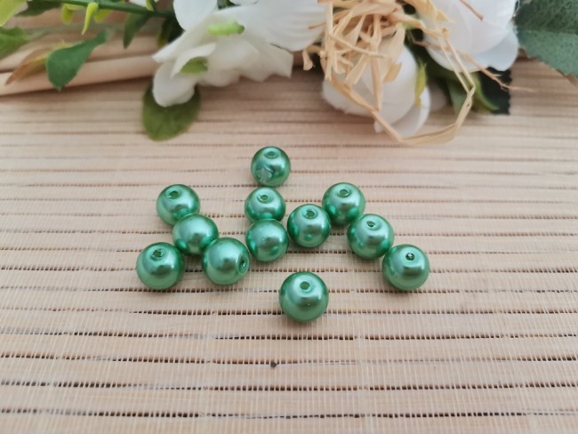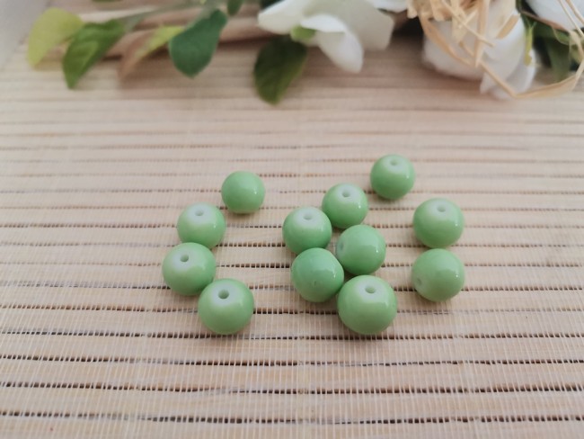50 Perles en verre 8 mm vert clair tréfilé blanc