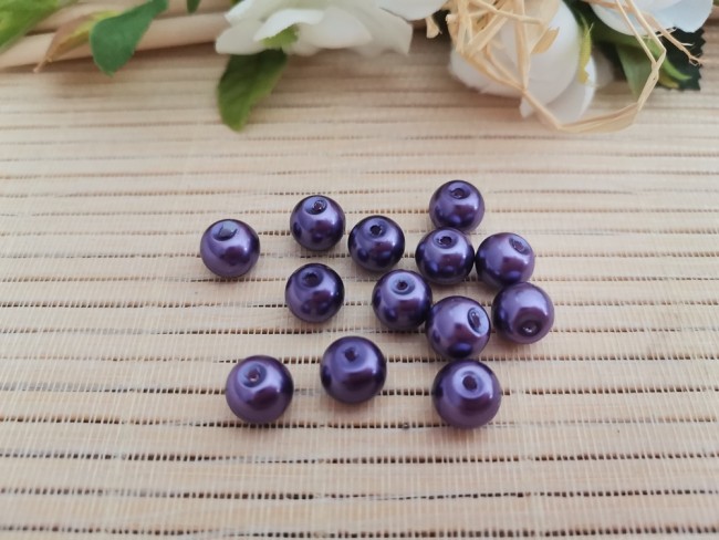 50 Perles en verre 8 mm violet foncé tréfilé blanc