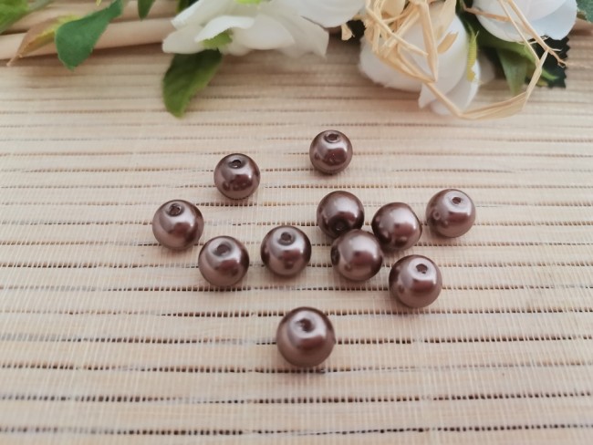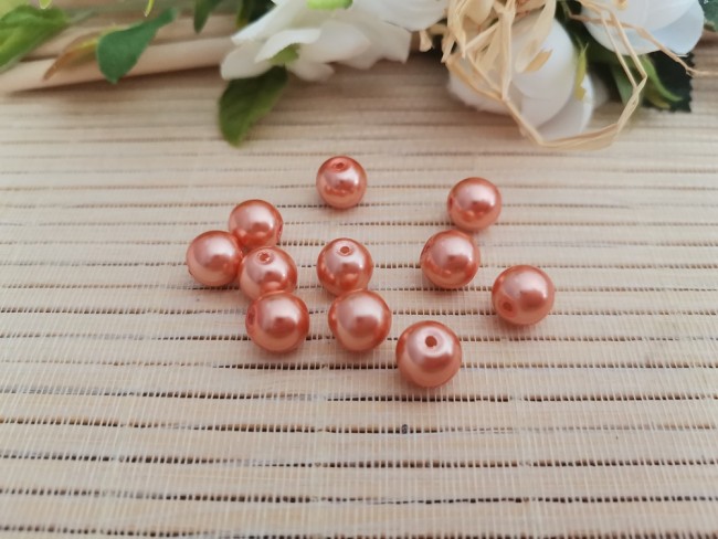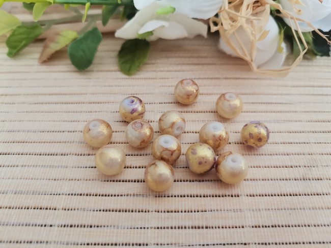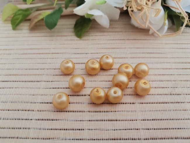 20 Perles en verre nacré mat 8 mm ocre x 20