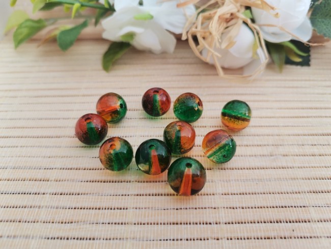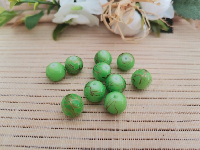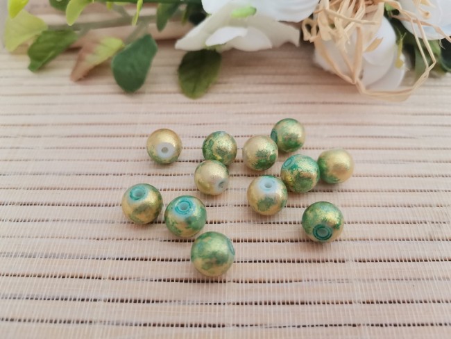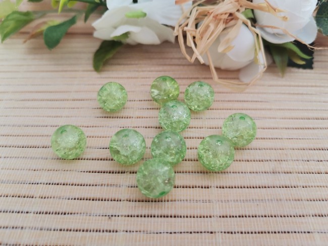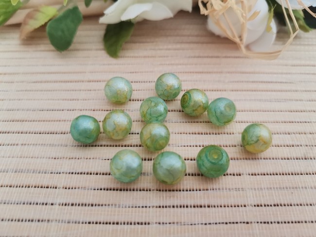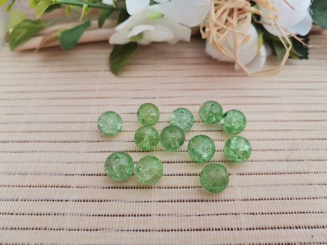 20 Perles en verre ronde 8 mm vert effet fissuré