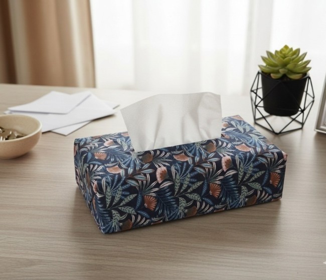 Housse pour boite à mouchoirs coton bleu marine et motifs grandes fleurs
