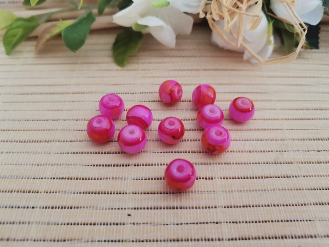 20 Perles en verre 8 mm fuchsia tréfilé rose