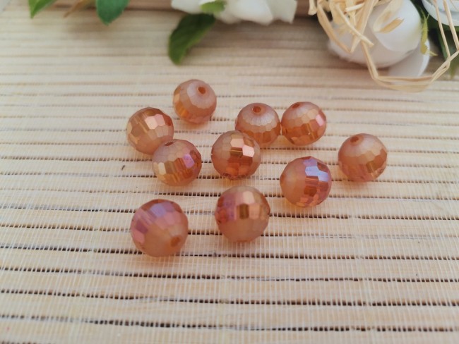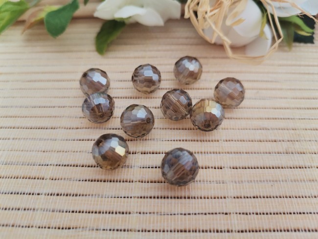 10 Perles en verre électroplate à facette 10 mm gris jaune à reflet AB