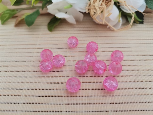 20 Perles en verre ronde 8 mm rose effet fissuré