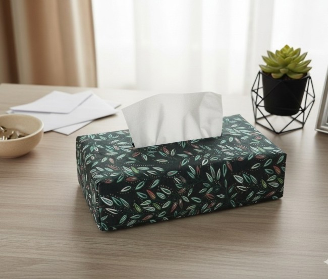 Housse pour boite à mouchoirs coton vert foncé et motifs gouttes