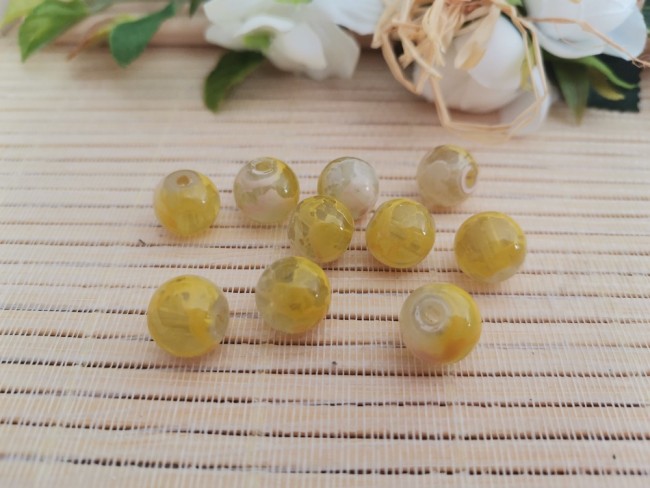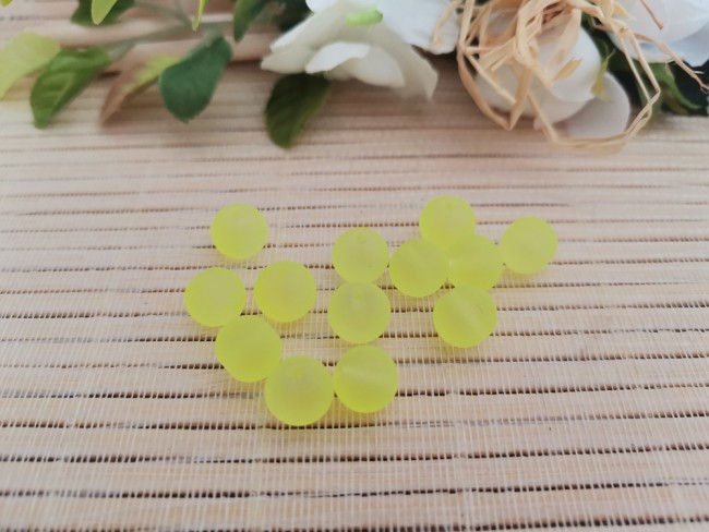 Perles en verre dépoli 8 mm jaune moutarde x 20
