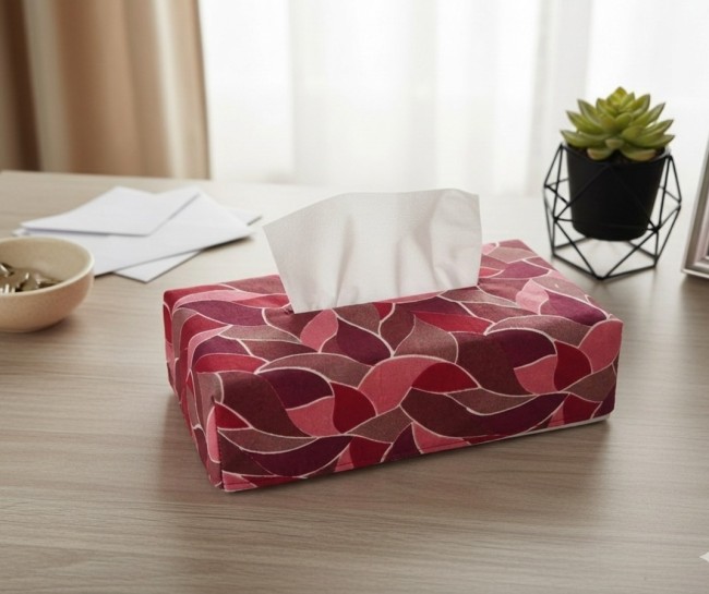 Housse pour boite à mouchoirs coton rose et motifs fleurs bordeaux