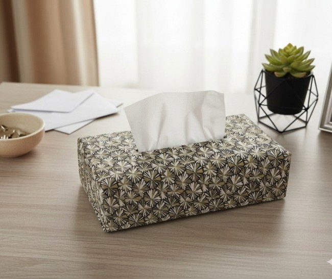 Housse pour boite à mouchoirs coton kaki et motifs fleurs