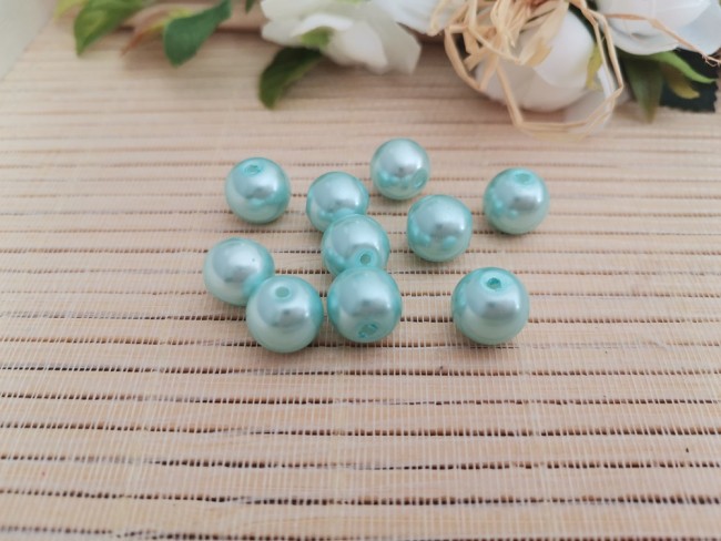 50 Perles en verre 8 mm bleu clair tréfilé blanc