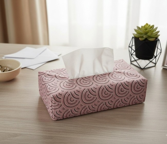 Housse pour boite à mouchoirs coton vieux rose et motifs ronds