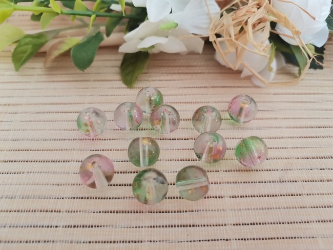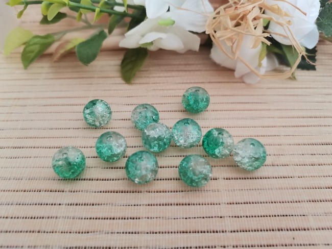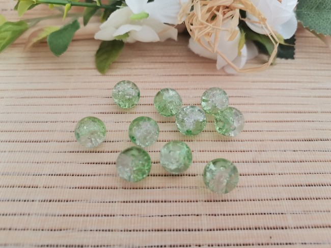 10 Perles en verre ronde craquelé 10 mm vert clair