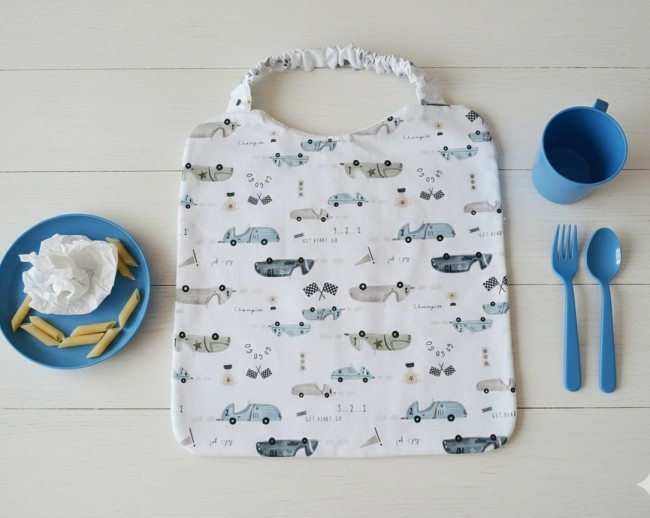Serviette de cantine motifs voitures anciennes et éponge blanche