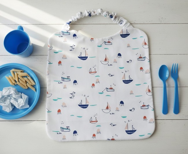 Serviette de cantine coton blanc motifs bateaux et éponge blanche