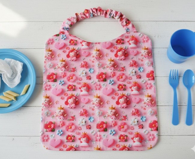 Serviette de cantine motifs princesse effet 3D et éponge blanche