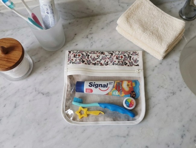 Pochette brosse à dent et dentifrice coton et coton enduit pour enfant