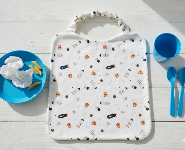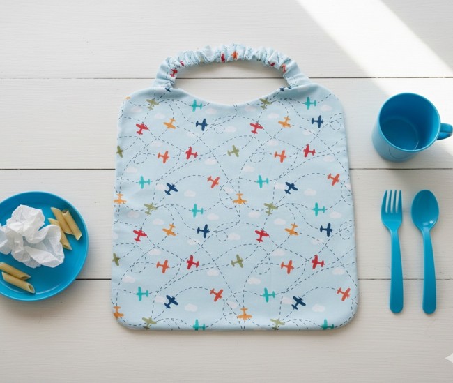 Serviette de cantine motifs avion ciel bleu et éponge blanche