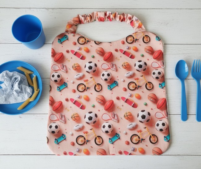 Serviette de cantine coton blanc motifs articles de sport et éponge blanche