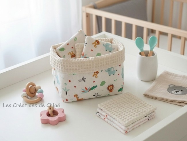 Coffret naissance/box naissance 8 lingettes coton imprimé animaux gris