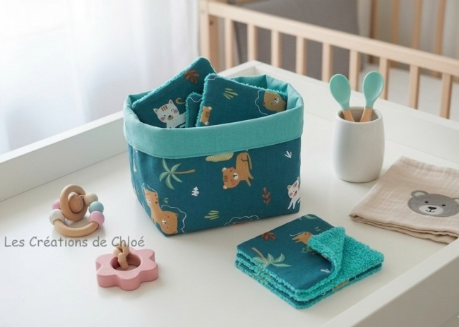 Lot de 12 lingettes démaquillantes et panier assorti - Turquoise/vert